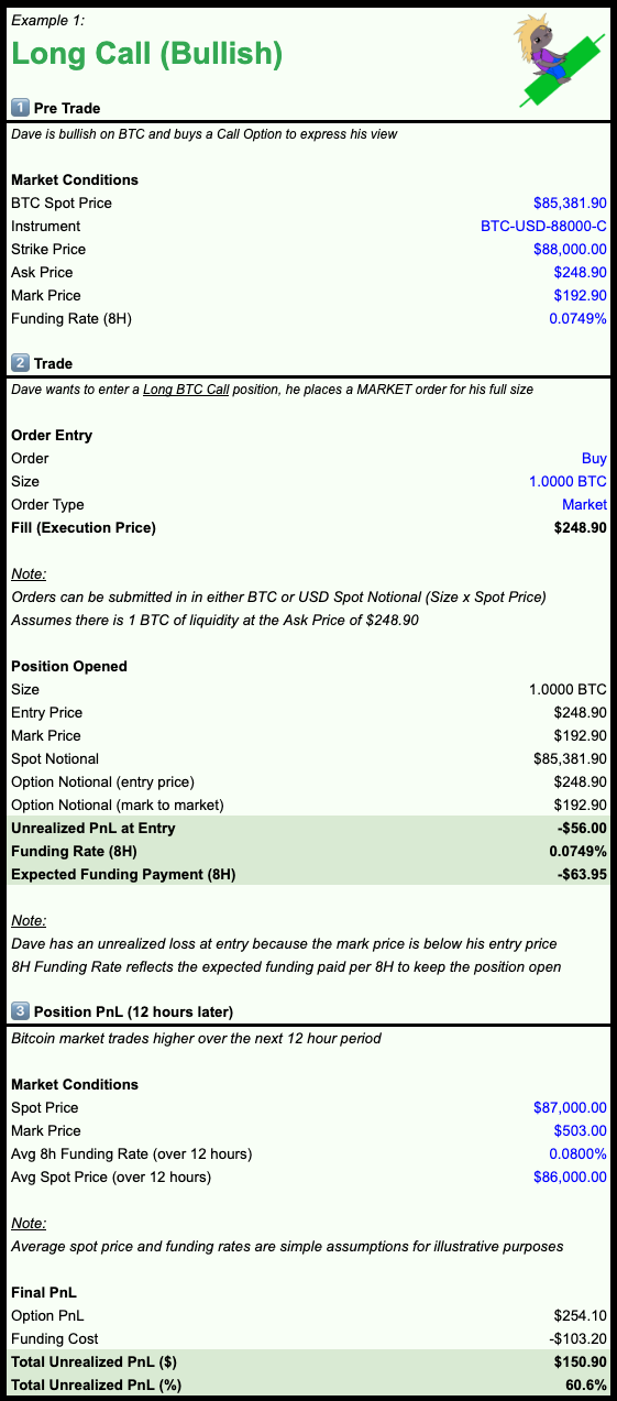 TradingPerpetual OptionsPerpetual Options ExamplesCopy pageLong CallLong PutShort CallShort PutLong Call Example Trade Perp Options Trade Examples